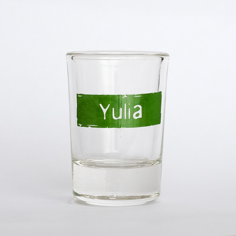 NA07YULЦвет: прозрачныйМатериал: стеклоРазмеры: 5х3смПечать: декольСтрана производства: БеларусьВсе изделия с именем YuliaВсе рюмки с именами